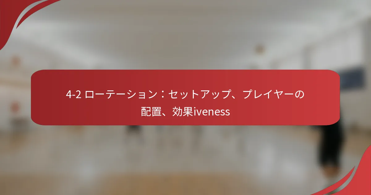 4-2ローテーションは、チームスポーツにおいて防御の安定性と攻撃の柔軟性の両方を強調する人気のフォーメーションです。このフォーメーションを効果的に設定するには、4人のディフェンダーと2人のミッドフィールダーを配置し、フィールド上でのカバーとサポートを最大化する必要があります。