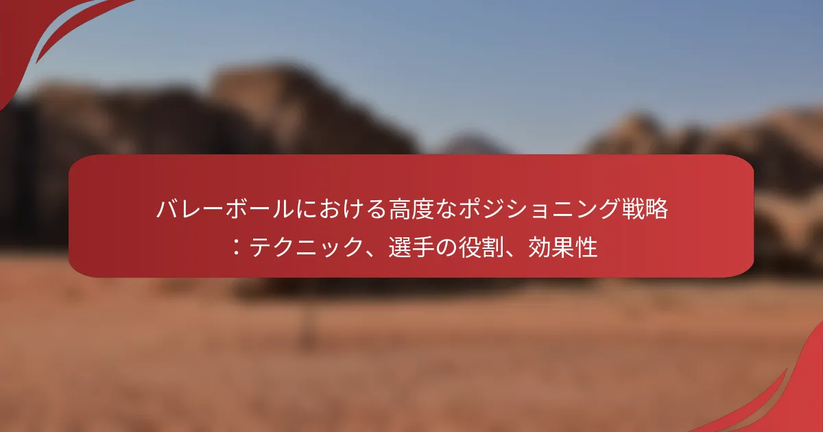 バレーボールにおける高度なポジショニング戦略は、選手の配置と動きを最適化することでチームのパフォーマンスを向上させます。これらの戦略は、攻撃の機会と守備のカバーを最大化することに焦点を当て、試合全体の効果を向上させます。