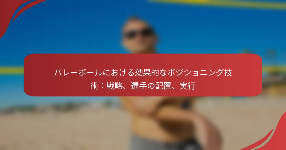 バレーボールにおける効果的なポジショニング技術は、チームのパフォーマンスを向上させ、コート上での成功を達成するために不可欠です。選手を役割やフォーメーションに基づいて戦略的に配置することで、チームは攻撃力と防御力を最適化できます。これらの技術を理解することで、選手はプレーを予測し、正確に動作を実行でき、試合中の包括的なカバーと調整を確保します。