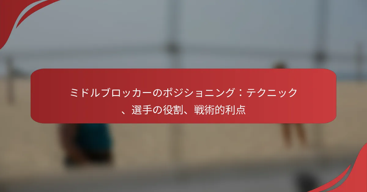 ミドルブロッカーのポジショニングは、効果的なフットワーク、正確なタイミング、相手チームのプレーを読む能力に依存しています。これらの技術を習得することで、選手は攻撃をブロックし、チームの防御に貢献する能力が向上します。