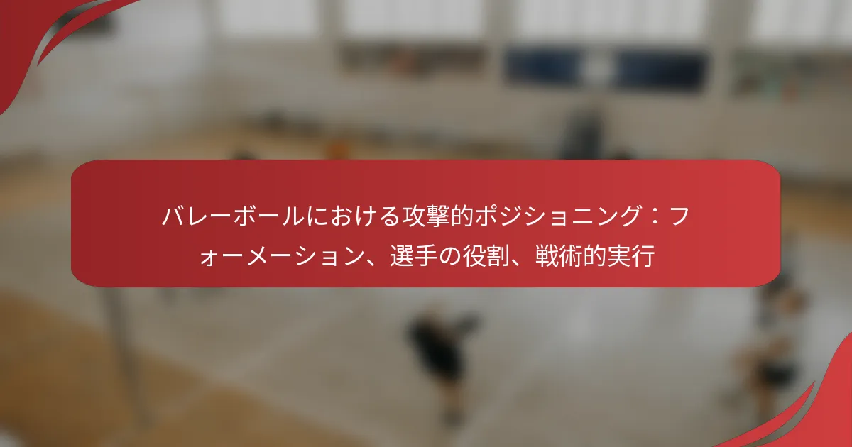 バレーボールにおける攻撃的ポジショニングは、得点とチームのダイナミクスに寄与する明確な選手の役割を含みます。各ポジションには、試合中のチーム全体の戦略と実行を強化する特定の責任があります。