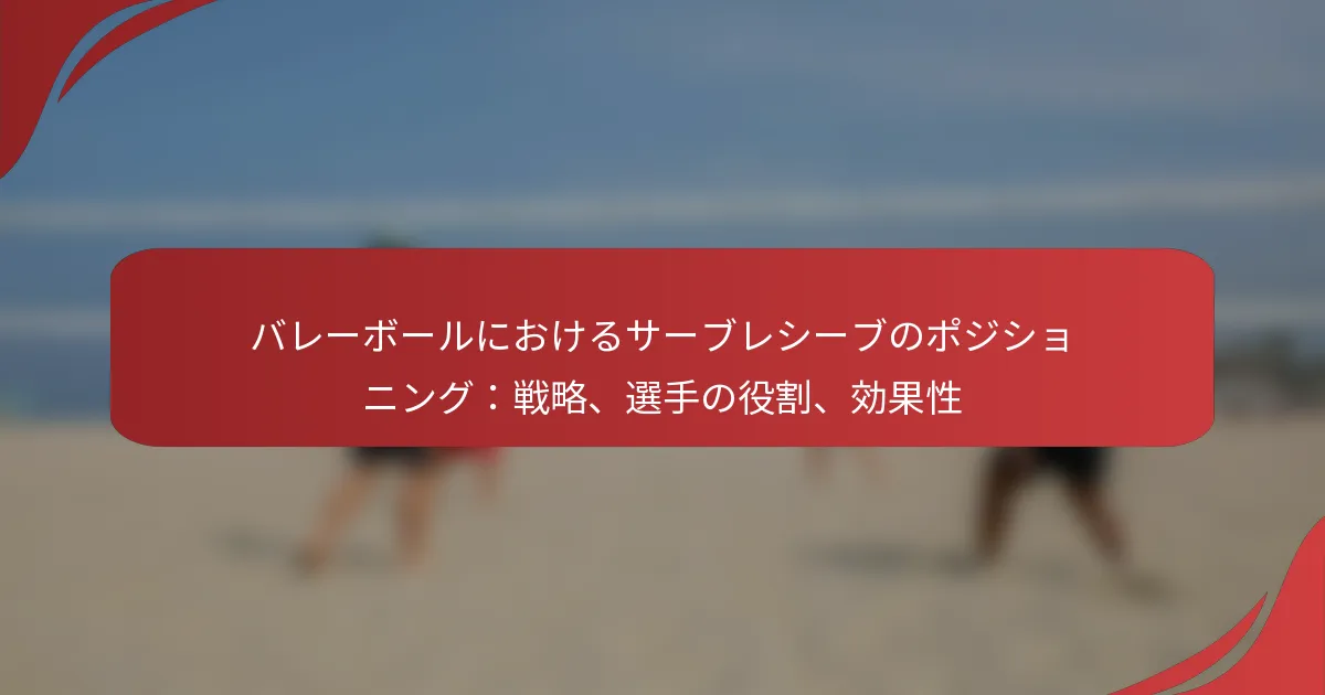 バレーボールにおける効果的なサーブレシーブのポジショニングは、チームの成功にとって重要であり、さまざまなサーブの種類や選手の強みに対する戦略的な対応を含みます。各選手は、レシーブを強化し、攻撃へのスムーズな移行を促進する特定の役割を担い、効果を最大化するためには明確なコミュニケーションが不可欠です。パフォーマンス指標や試合統計を分析することで、チームはサーブレシーブ戦略を評価し、全体的なパフォーマンスを向上させることができます。