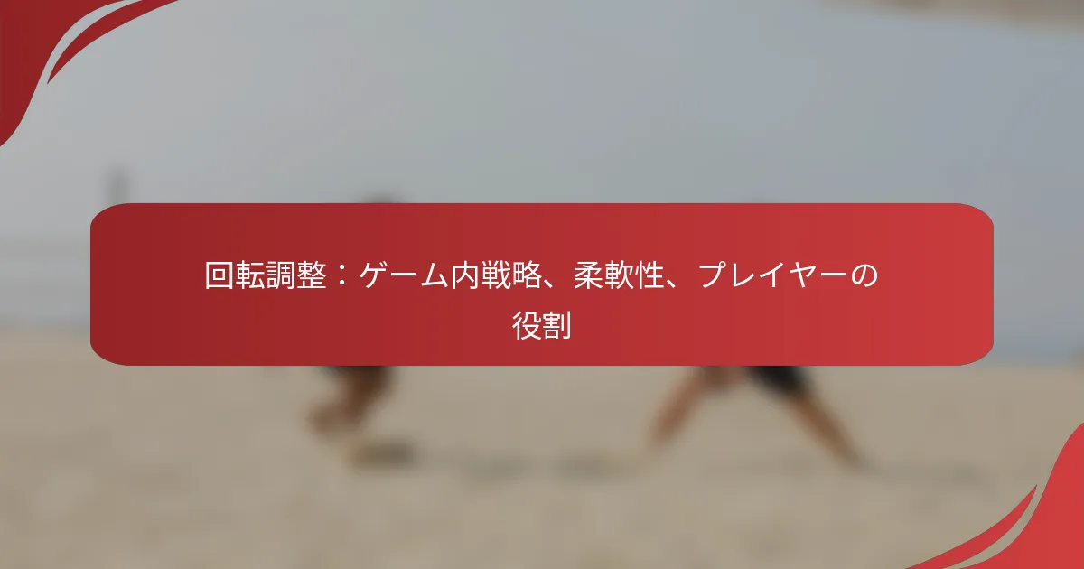 ゲームにおけるローテーション調整は、試合中に選手のポジションや役割を変更してチームのパフォーマンスを向上させるための重要な戦略です。これらの調整を活用することで、チームは柔軟性を保ち、ゲームプレイの動的な性質に応じて迅速に対応し、対戦相手に効果的に対抗し、進化する状況に適応することができます。
