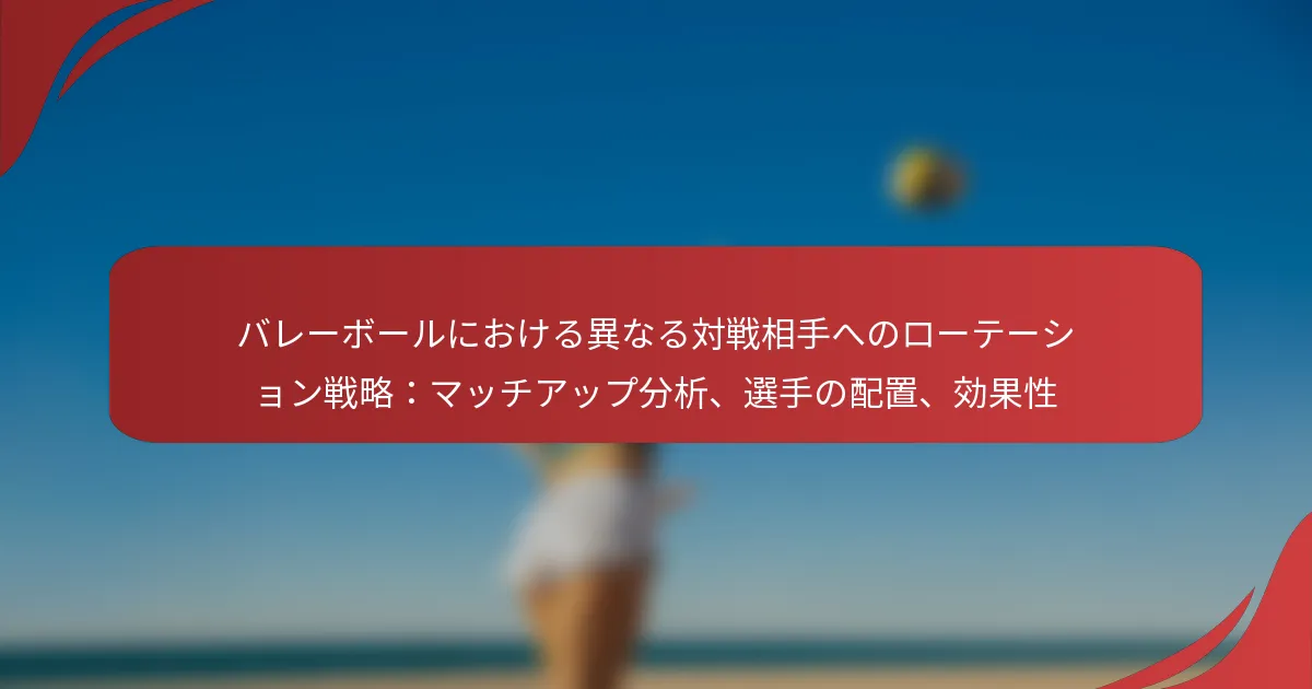 バレーボールにおいて、重要なローテーション戦略は、多様な対戦相手に対してチームのパフォーマンスを最大化するために不可欠です。選手の動きや配置を体系的に調整することで、チームは自らの強みを活かし、相手の弱点を突くことができます。対戦相手の特性を分析することは、試合中の全体的なプレイと効果を高めるための効果的なマッチアップ戦略を開発する上で重要です。