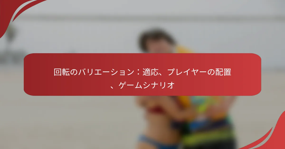 スポーツにおけるローテーションの変化は、試合中の選手の配置や役割における戦略的な調整を指します。これらの適応は、チームのパフォーマンスを最適化し、選手の効果を高め、ダイナミックなゲームシナリオに対応するために重要です。